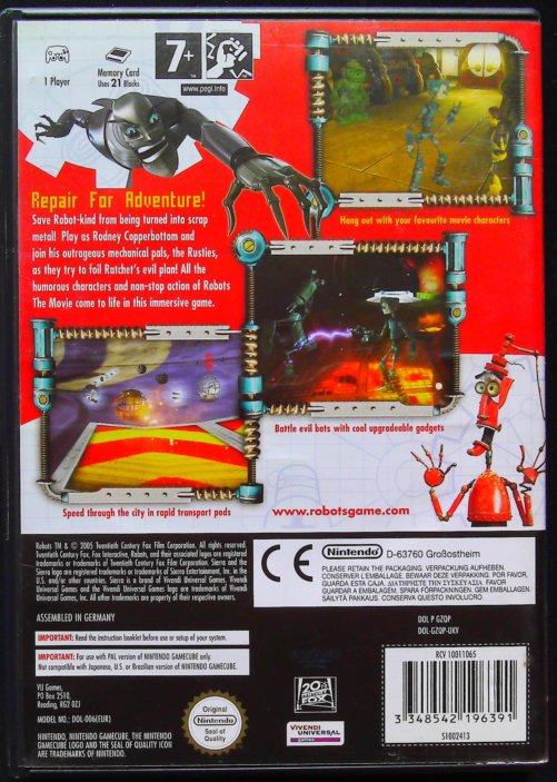 Plongez dans l’univers déjanté et mécanique de l’adaptation vidéoludique du film d’animation avec le jeu Game cube Robot. Ce titre, conçu pour la console GameCube, vous emmène dans un monde où la ferraille et la fantaisie se rencontrent. Incarnez le jeune et ambitieux Rodney Copperbottom, un inventeur qui rêve d’un monde meilleur. Entre les ruelles de Robot City et les défis de Bigweld Industries, vous vivrez une aventure pleine d’humour et d’action. Le jeu est parfait pour les fans du film et les joueurs à la recherche d’un jeu de plateforme familial et divertissant.