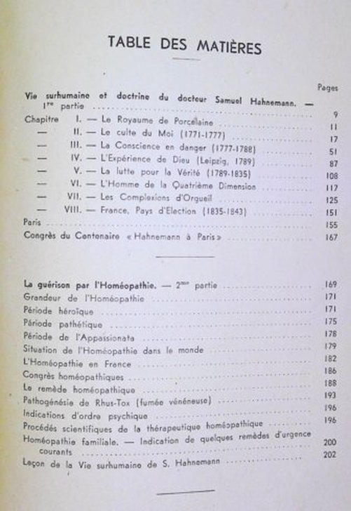 L’auteur consacre une partie significative à la vie et doctrine du Docteur S. Hahnemann. Samuel Hahnemann est reconnu comme le fondateur de l’homéopathie. Le livre analyse le contexte historique de la naissance de cette méthode. Il expose les principes fondamentaux de la médecine homéopathique. Cela inclut la loi de similarité et l’infinitésimalité des doses.