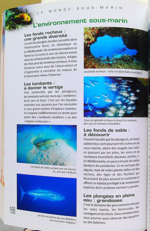 Une grande partie du livre est consacrée à l’environnement. Elle présente les océans et leurs différentes zones de vie. La classification des espèces marines est expliquée simplement. De nombreux groupes animaux et végétaux sont illustrés. Le livre insiste sur l’importance de protéger ce milieu fragile. La charte du plongeur responsable est ainsi mise en avant.