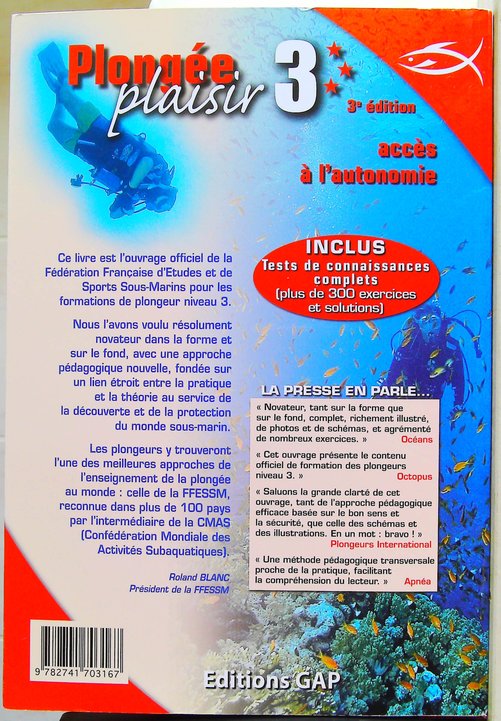Ce livre est un manuel officiel de la Fédération Française d’Études et de Sports Sous-Marins. Il couvre la formation complète pour obtenir le niveau 3 de plongée. Ce niveau autorise une plongée autonome jusqu’à soixante mètres. Il représente une étape cruciale dans le parcours du plongeur. L’ouvrage suit strictement les standards pédagogiques fédéraux.