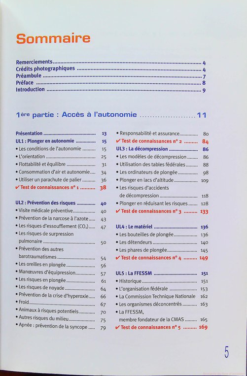 Un module complet traite de la prévention des accidents. La visite médicale obligatoire y est expliquée en détail. Les risques de narcose à l’azote font l’objet d’une analyse précise. Le manuel prévient aussi les dangers de surpression pulmonaire. Il donne des conseils pour protéger ses oreilles en immersion. La responsabilité civile du plongeur est clairement définie.