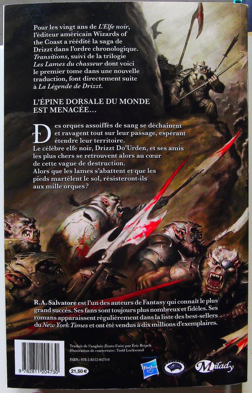Pour les vingt ans de L’Elfe noir, l’éditeur américain Wizards of the Coast a réédité la saga de Drizzt dans l’ordre chronologique. Transitions, suivi de la trilogie Les Lames du chasseur dont voici le premier tome dans une nouvelle traduction, font directement suite à La Légende de Drizzt.