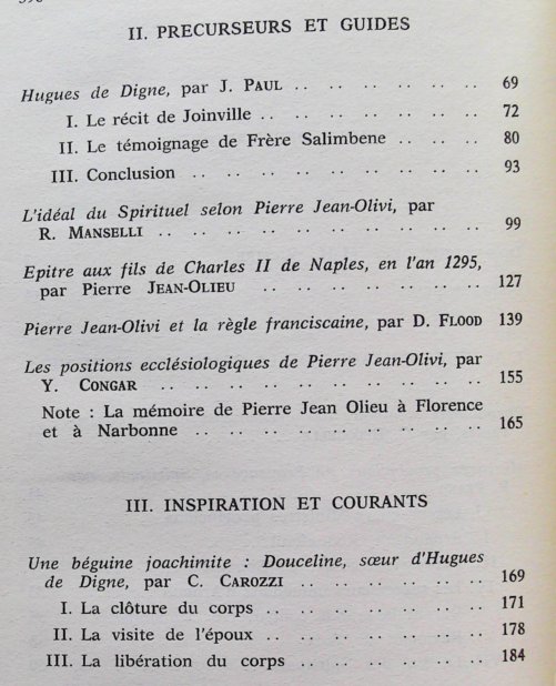 Une béguine joachimite : Douceline, sœur d’Hugues de Digne, par C. Carozzi ••• 169