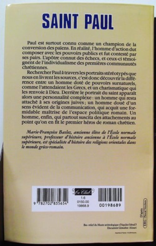 L’ouvrage Saint Paul est une biographie détaillée consacrée à l’une des figures majeures du christianisme. L’auteure est Marie-Françoise Baslez, une historienne reconnue. Publié en 1999 par Le Grand Livre du Mois, ce livre retrace le parcours de l’apôtre. Ce titre est essentiel pour les recherches sur la vie de Saint Paul, l’histoire du christianisme primitif et l’œuvre de Marie-Françoise Baslez.