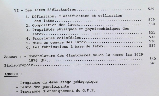 Le dernier chapitre couvre les élastomères. Il commence par leur production industrielle. Il distingue le caoutchouc naturel des synthétiques. La polymérisation radicalaire, cationique et par métaux de transition est abordée. Il établit la différence entre élastomère et plastomère. Il explique l’influence de la nature de l’élastomère.