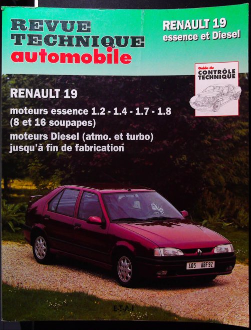 Titre : Renault 19 – Moteurs essence 1.2-1.4-1.7-1.8, 8 et 16 soupapes, moteurs diesel, atmo – et turbo, jusqu’à fin de fabrication