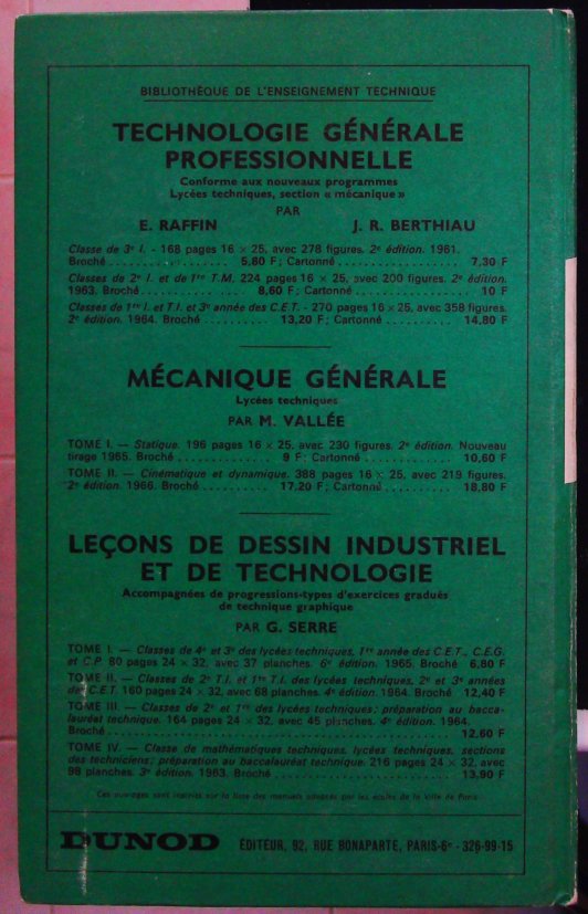 Éditeur : Dunod, Bibliothèque de l’Enseignement Technique