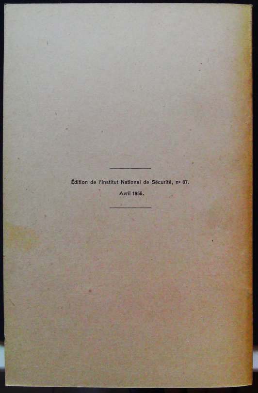 Envoi soigné et Déposé en 48h (jours ouvrables) Edition Institut national de sécurité 13,5 x 21 x 0,6 cm 152 pages Dépot légal:1953 Bon état : décoloration de la couverture du coté de la reliure, pages jaunies
