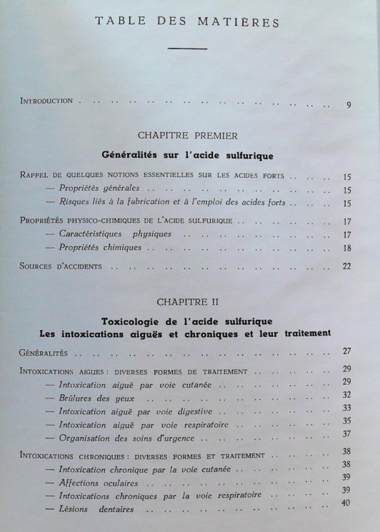 CHAPITRE II – Toxicologie de l’acide sulfurique : Les intoxications aiguës et chroniques et leur traitement