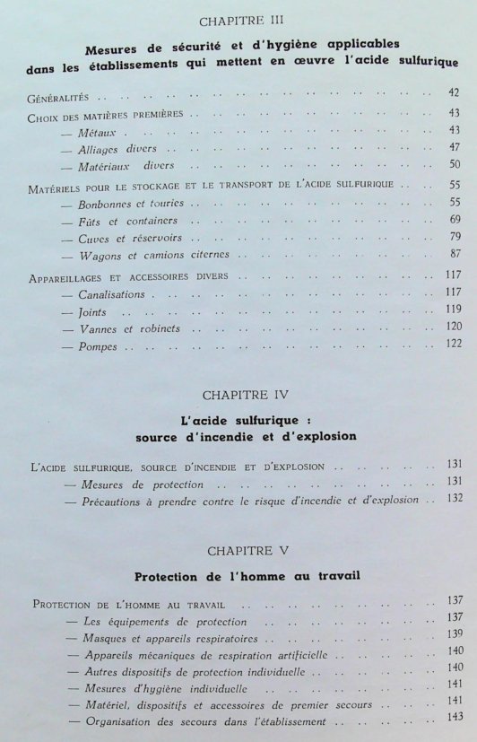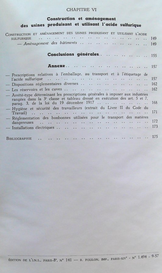 Construction et aménagement des usines produisant et utilisant l’acide sulfurique …………………….. 149