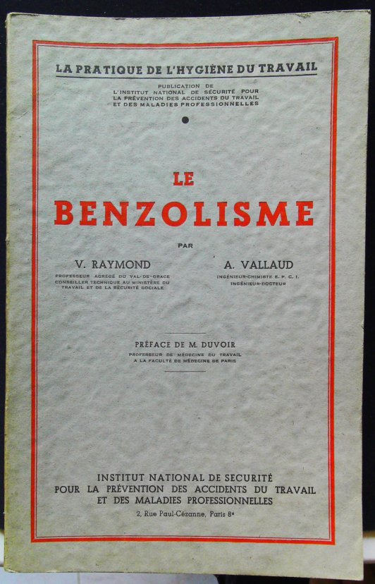 Publié en 1957 par l’Institut national de sécurité (INS), ce rapport est l’une des études les plus complètes de l’époque sur le benzolisme, l’intoxication professionnelle par le benzène. Rédigé par V. Raymond et A. Vallaud, cet ouvrage fait le point sur les connaissances toxicologiques et cliniques. Il constitue une référence historique majeure pour la médecine du travail et l’hygiène industrielle en France.