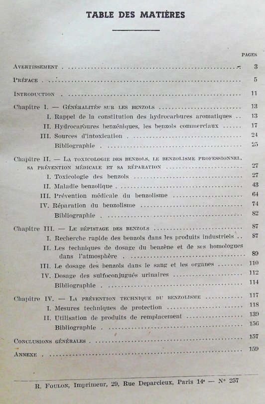 CHAPITRE IV – LA PRÉVENTION TECHNIQUE DU BENZOLISME ….. 117