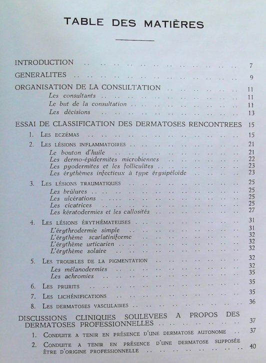 La dermatose est-elle vraiment professionnelle ? …………………….. 40