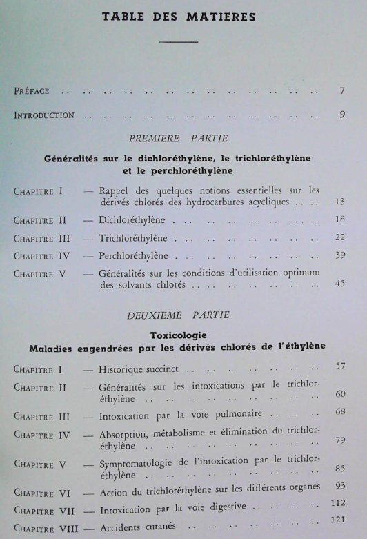 CHAPITRE III —— Trichloréthylène …………………….. 22