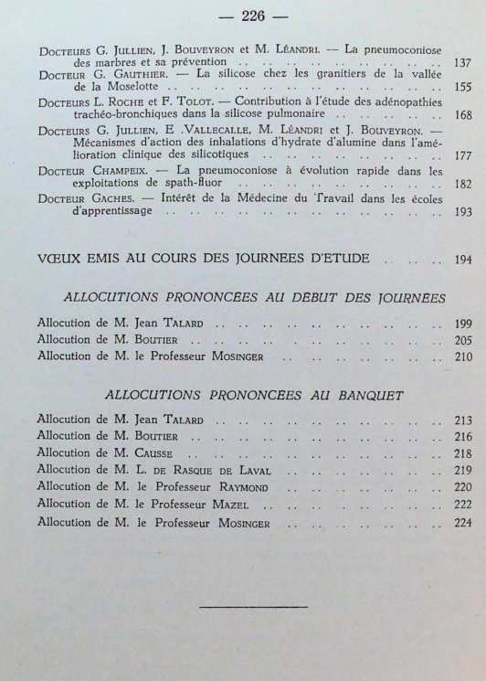 Docteur G. Gauthier – La silicose chez les granitiers de la vallée de la Moselotte …………………….. 155