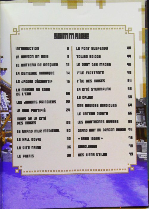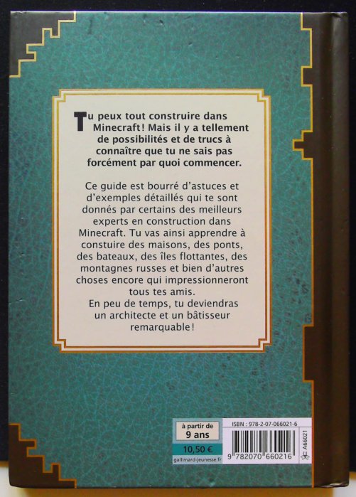 Ce guide est bourré d’astuces et d’exemples détaillés qui te sont donnés par certains des meilleurs experts en construction dans Minecraft. Tu vas ainsi apprendre à construire des maisons, des ponts, des bateaux, des îles flottantes, des montagnes russes et bien d’autres choses encore qui impressionneront tous tes amis.